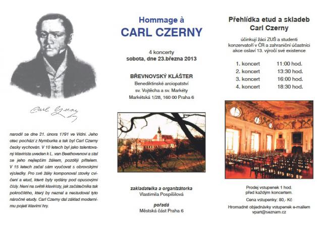 Uvnitř článku program koncertů ke stažení. Přehlídka etud a skladeb Carl Czerny k jeho 222. výročí narození. Čtyři koncerty v sobotu 23. března v Břevnovském klášteře.