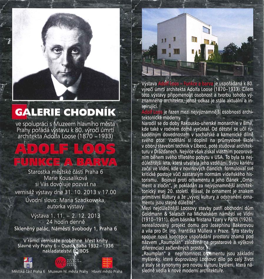 Galerie Chodník ve spolupráci s Muzeem hlavního města Prahy pořádá výstavu k 80. výročí úmrtí architekta Adolfa Loose (1870 - 1933).