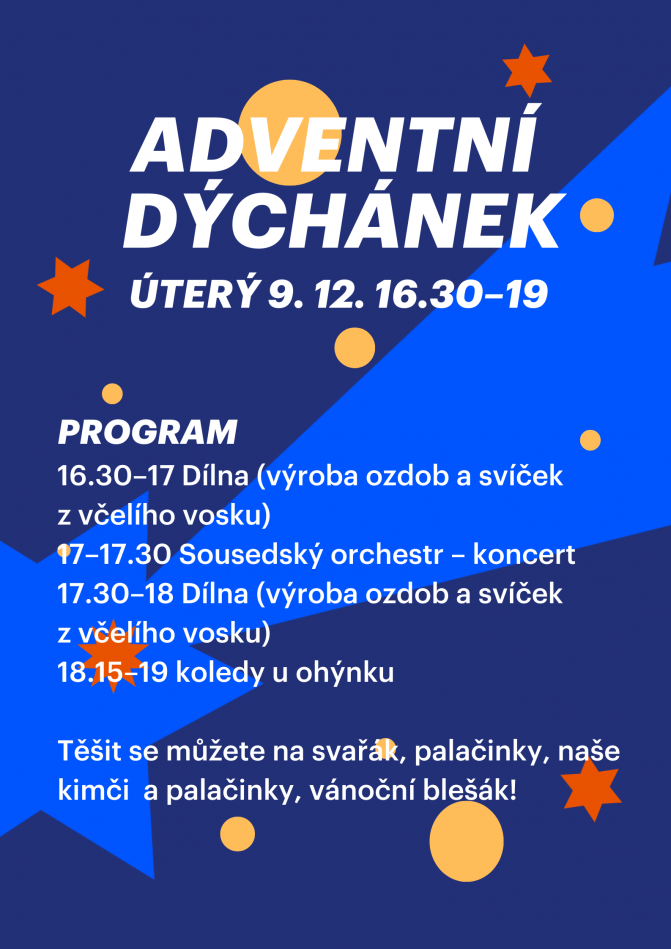 Přijďte se nadechnout adventní pohody, potkat sousedy, zahřát se svařákem a nasát atmosféru Vánoc ![]()