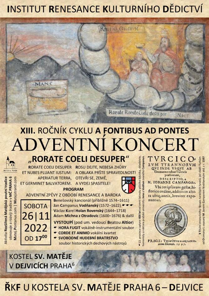 Zazní některé písně z nepřeberného množství starobylých rorátních a adventních melodií. Připomeneme si také básníka a skladatele Jana Campana Vodňanského, od jehož úmrtí letos uplyne 400 let.