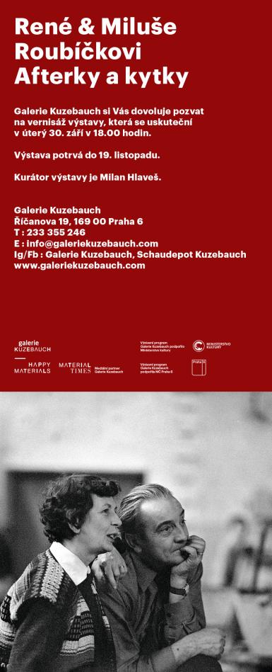 Povahovou introvertku Miluši Roubíčkovou zde zastupují květiny, kterými se originálním způsobem zabývala od konce 60. let. Při každém svém vystavení mají vždy odlišnou, neopakovatelnou podobu. Reného Roubíčka, který se svému okolí jevil jako extrovert sršící pozitivní energií, reprezentují busty ze závěru jeho života. Jelikož doposud nebyly vystaveny v takové šíři, jedná se v Galerii Kuzebauch v obou případech o svého druhu premiéru.
