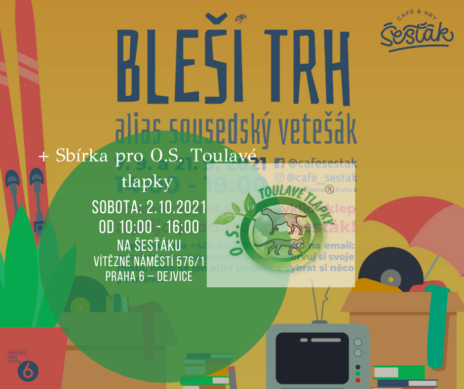 Sousede vymeť skříně, vykliď sklep a přijď prodávat na Šesťák + bude zde sbírka na neziskovou organizaci Toulavé tlapky!!