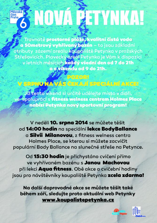 Od 14:00 hodin se můžete těšit na speciální lekce BodyBallance a Silvii Milanovou z fitness welness centra HolmesPlace, se kterou si můžete zacvičit populární BodyBallance na slunečné střeše na Petynce.