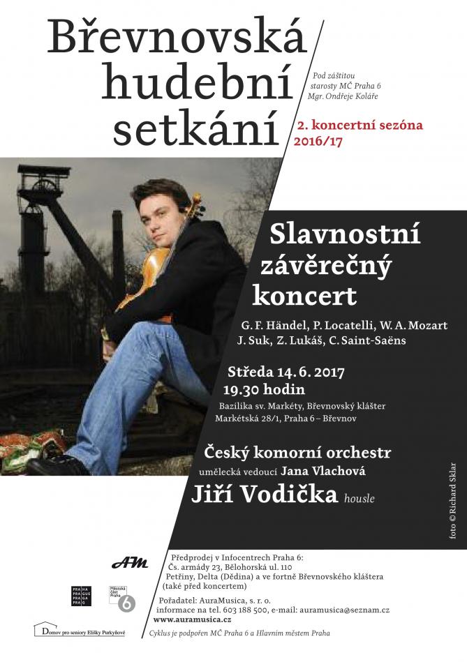 Slavnostní závěrečný koncert 2. sezóny přivítá vynikající hudebníky - Český komorní orchestr a houslistu Jiřího Vodičku, koncertního mistra České filharmonie. V kouzelné atmosféře Baziliky sv. Markéty zazní díla G. F. Händela, W. A. Mozarta, J. Suka a dalších.