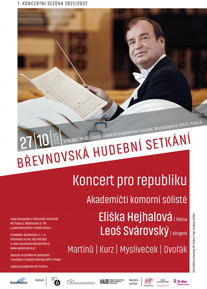 Druhý koncert 7. sezóny BHS se uskuteční v kostele Církve československé husitské ve středu 27. 10. 2021 v 19.00 hodin. Na programu koncertu věnovanému významnému svátku ČR jsou skladby B. Martinů, I. Kurze, J. Myslivečka a A, Dvořáka. Koncert je pořádán ve spolupráci s Hudební a taneční fakultou AMU, která v těchto dnech slaví 75. výročí založení. Vstupenky je možno zakoupit v Informační kanceláři P6 na Bělohorské ul. 110 a před koncertem v místě konání. Pro seniory a mládež za 150 Kč, běžná cena 250 Kč