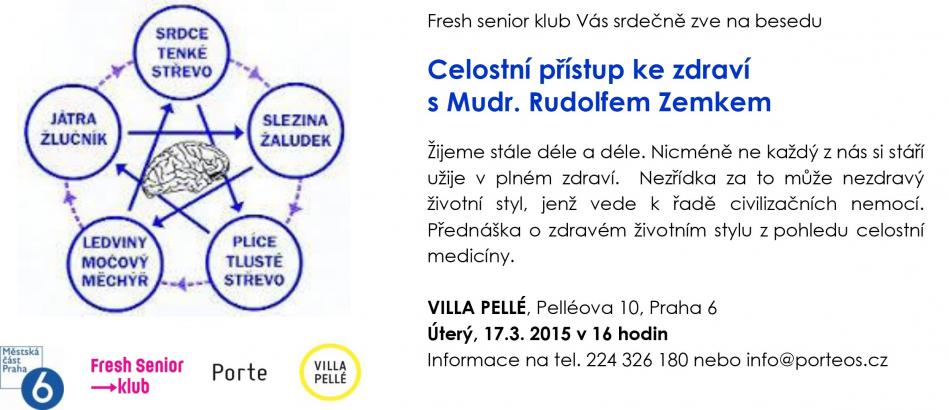 Fresh senior klub Vás srdečně na besedu s o celostním přístupu ke zdraví s Mudr. Rudolfem Zemkem v úterý 17.3. od 16 hodin do Villy Pellé.