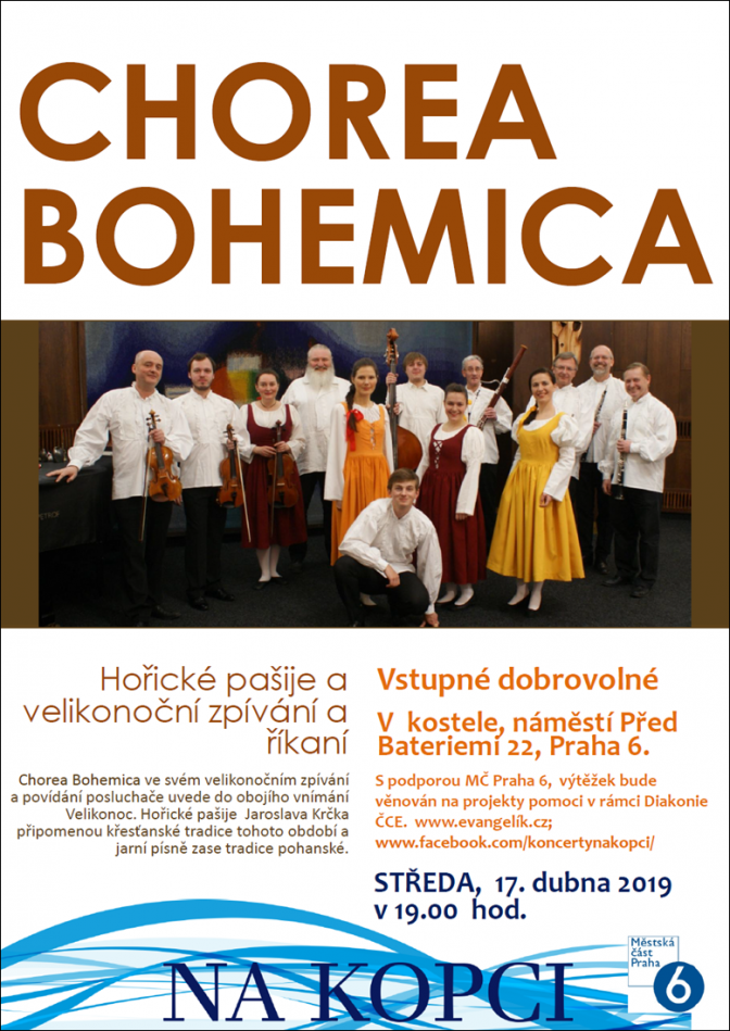 Chorea Bohemica ve svém velikonočním zpívání a povídání uvede posluchače do obojího vnímání Velikonoc. Hořické pašije Jaroslava Krčka připomenou křesťanské tradice tohoto období a jarní písně zase tradice pohanské.