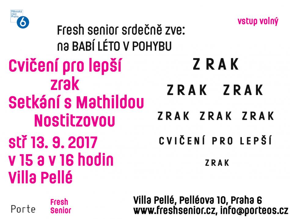 V rámci Babího léta v pohybu si procvičíme zrak tak, aby nám neunikla žádná známá tvář. O hodinu později se můžete osobně potkat s paní Mathildou Nostitzovou, zakladatelkou Nadačního fondu Matilda.
