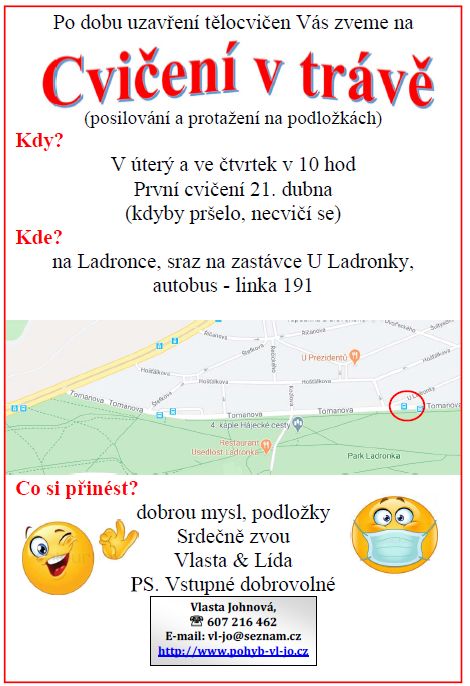 Od 21. dubna vždy v úterý a ve čtvrtek v 10 hod. (nebude-li pršet), sraz na stanici autobusu 191 Ladronka.