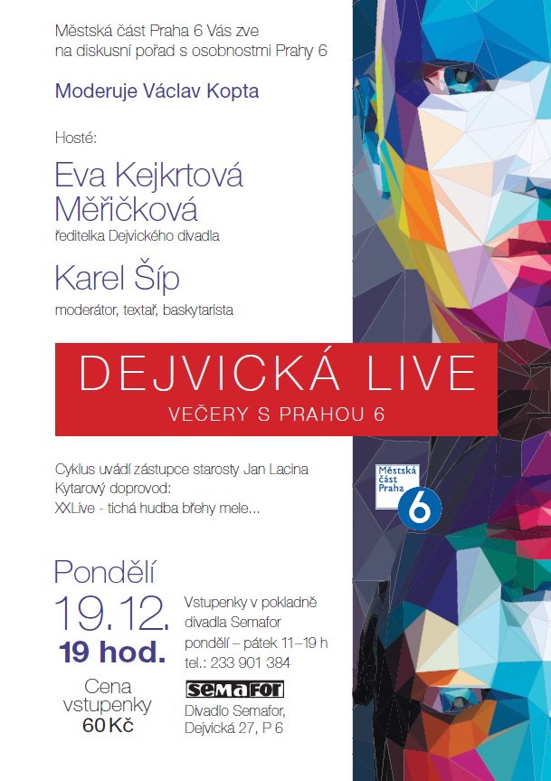 V pondělí 19. 12. se můžete opět těšit na Dejvickou Live , která tento měsíc přináší posezení s Evou Kejkrtovou Měříčkovou a Karlem Šípem.