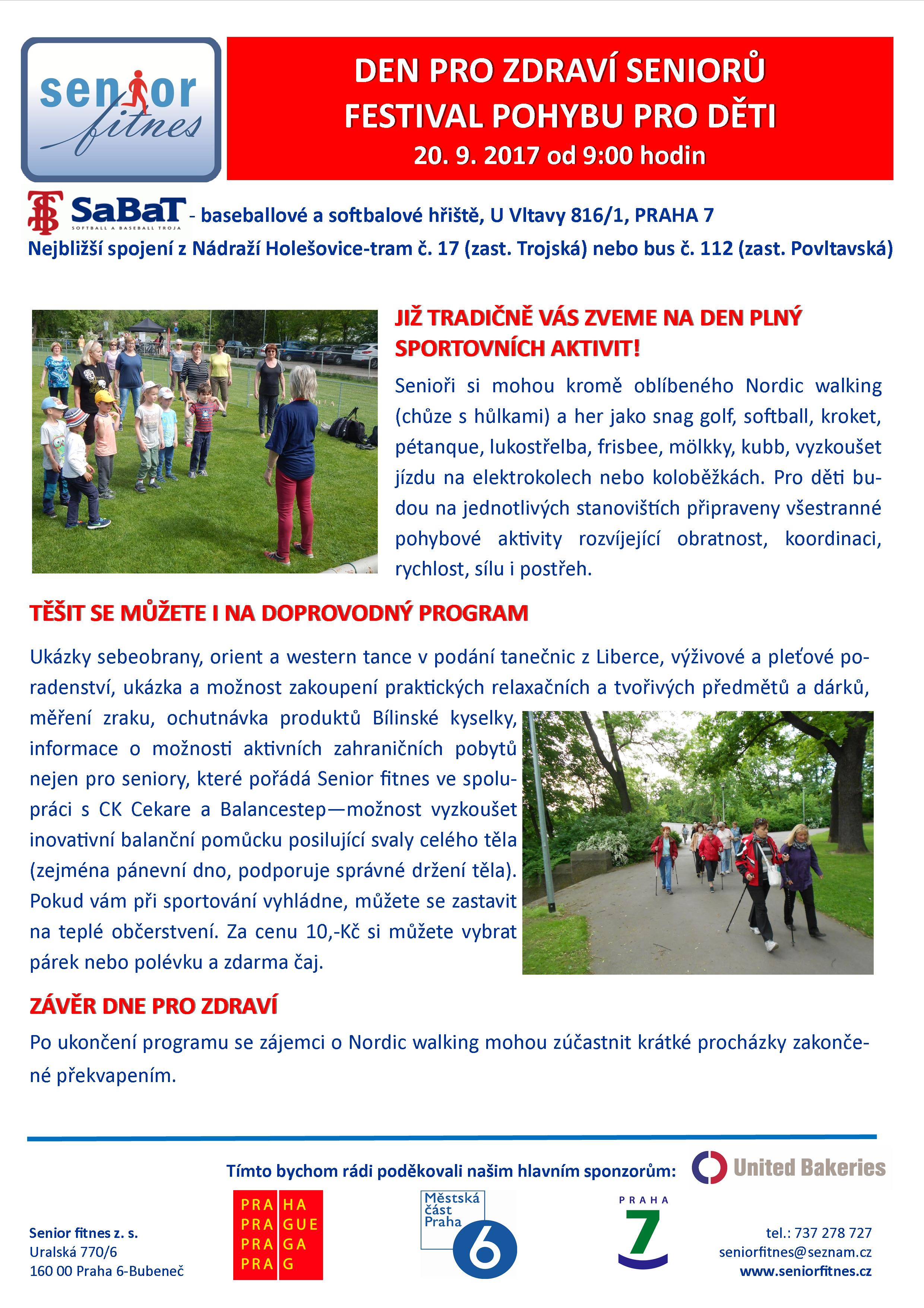 Zveme vás na Den pro zdraví, který pořádá organizace Seniorfitnes z.s., na hřišti SaBaTu dne 20.09.2017 od 9:00 hod. Akce je určena pro širší veřejnost. Bližší informace najdete v příloze.