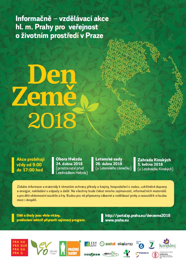 Hlavní město Praha pořádá k oslavám svátku Dne Země 2018 informačně vzdělávací kampaň pro veřejnost zaměřenou na ochranu životního prostředí. Akce startuje v úterý 24. dubna v Oboře Hvězda (prostranství před Letohrádkem Hvězda).
