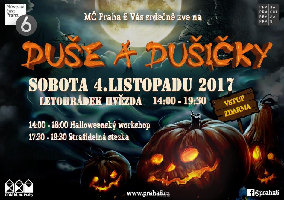 Městská část Praha 6 Vás srdečně zve na akci DUŠE A DUŠIČKY, která se uskuteční v sobotu 4. listopadu od 14.00 do 19.30 hodin v Letohrádku Hvězda.