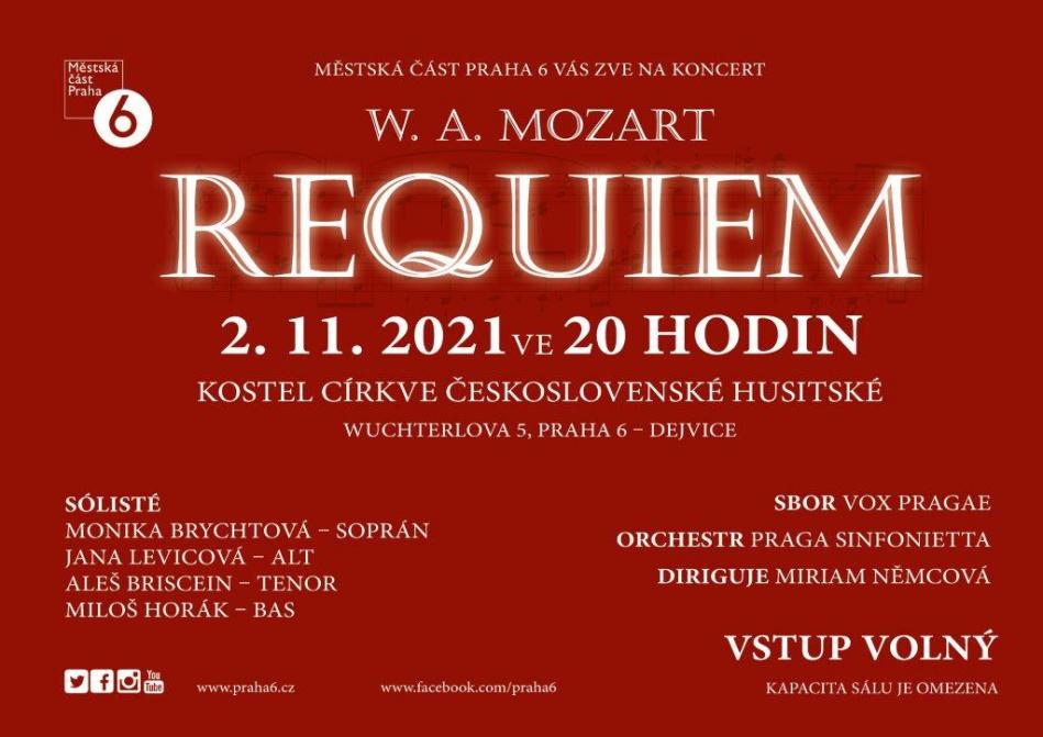 U příležitosti Svátku zesnulých zve Městská část Praha 6 na tradiční dušičkový koncert. Na programu Requiem W. A. Mozarta.