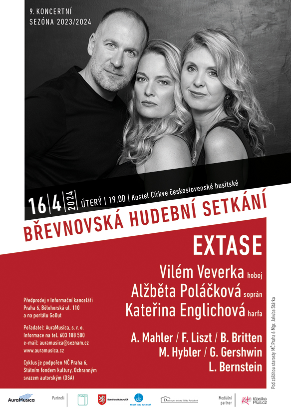 Hobojista Vilém Veverka je „hledač“ – usiluje neustále nalézat nové cesty atraktivní prezentace tzv. klasické hudby. Jednou z nich je vytváření neobvyklých hudebních spojení, v nichž i známé kompozice vyznívají jakoby v novém hávu. Tenhle princip zcela naplňuje projekt EKSTASE, do něhož Veverka pozval dvě hvězdy současné české scény, sopranistku Alžbětu Poláčkovou, sólistku Národního divadla v Praze, a harfistku Kateřinu Englichovou, sólistku řady domácích i zahraničních koncertních událostí. Koncert je nazván podle stejnojmenné písně Almy Mahler, vedle ní zazní i skladby Franze Liszta, Georga Gershwina, Leonarda Bernsteina (mj. tři slavné melodie z muzikálu West Side Story Somewhere, Maria, Tonight), Benjamina Brtittena či Martina Hyblera