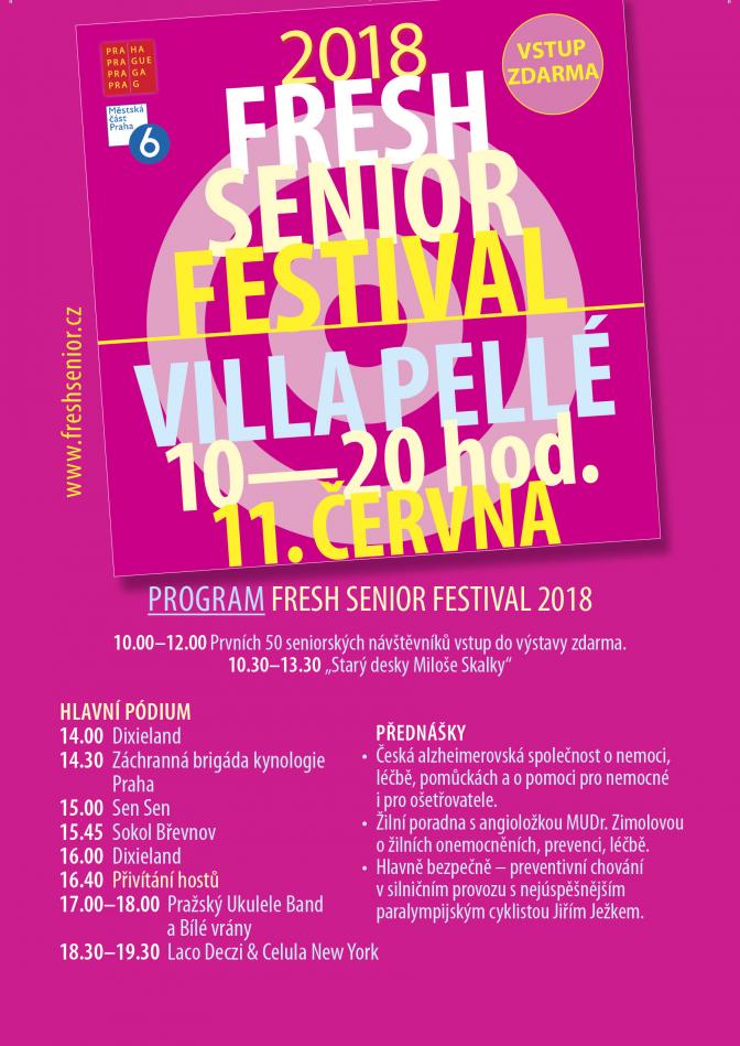 Srdečně zveme na šestý ročník Fresh senior festivalu 2018. Připravený je bohatý program s nabídkou pohodové hudby, besed s odborníky nejen z řad lékařů, tance, soutěže o zajímavé ceny a úžasných koncertů na závěr festivalu.