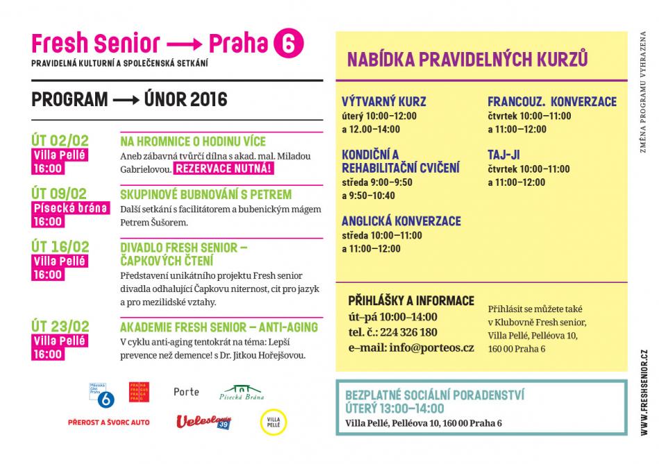 Fresh senior klub - program únor 2016