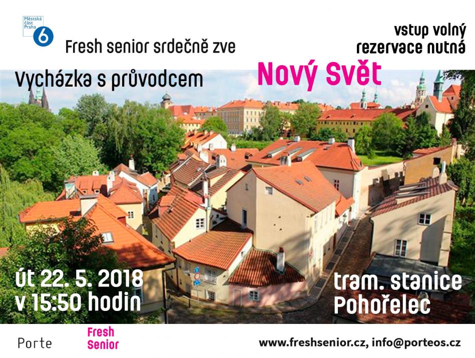 Fresh senior srdečně zve na vycházku s průvodcem do jednoho z posledního malebného kouktu Prahy, které zatím stále není tolik atakováno turisty - Nový Svět. Účast je možná po předchozí potvrzené rezervaci místa.