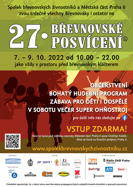 Zveme Vás 7. - 9. října 2022 na 27. břevnovské posvícení u Břevnovského kláštera. Dojedete k nám tramvají číslo 22 a 25, stanice Břevnovský klášter.