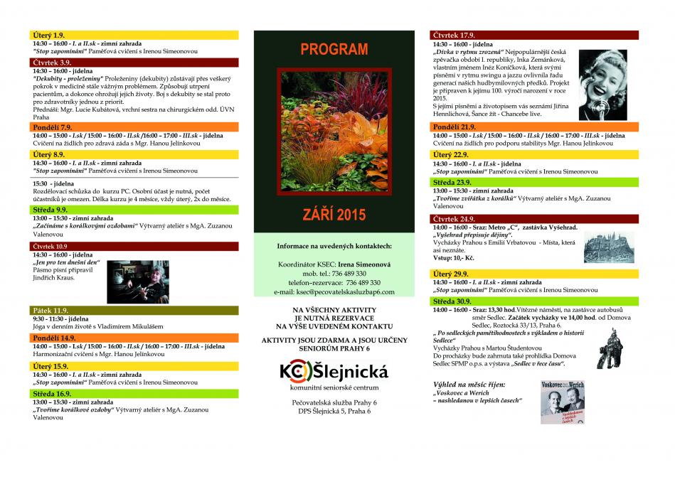 Program Komunitního seniorského centra na měsíc ZÁŘÍ, který po prázdninové pauze se opět vrací. Najdeme v něm jak přednášky, procházky a další aktivizační programy pro seniory městské části Praha 6, pro které jsou připravovány zdarma.