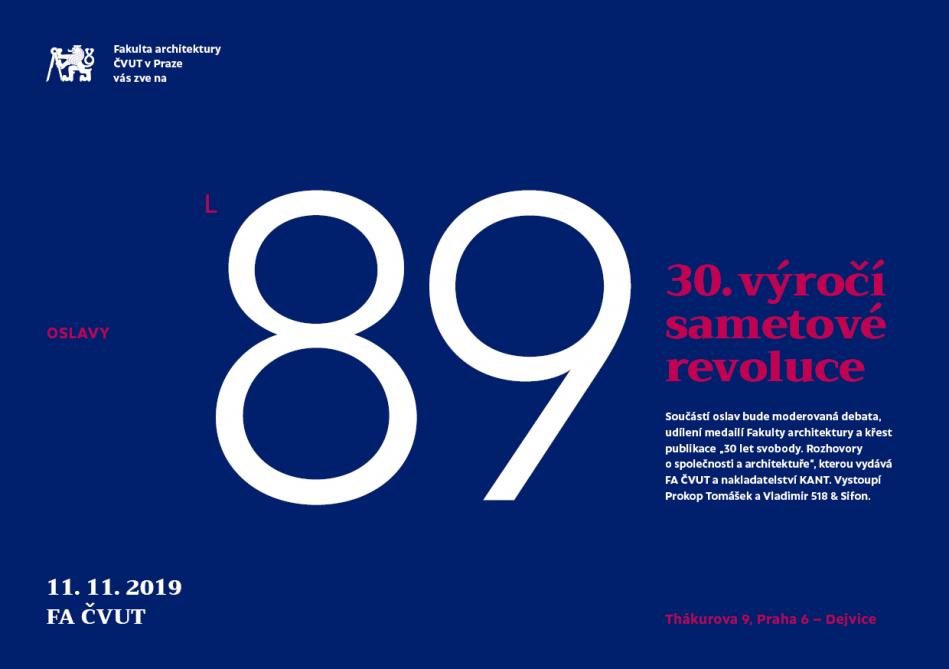 18.00 – 18.45 slavnostní zahájení ve dvoraně Fakulty architektury ČVUT, křest knihy 30 let svobody, udílení medailí FA ČVUT
