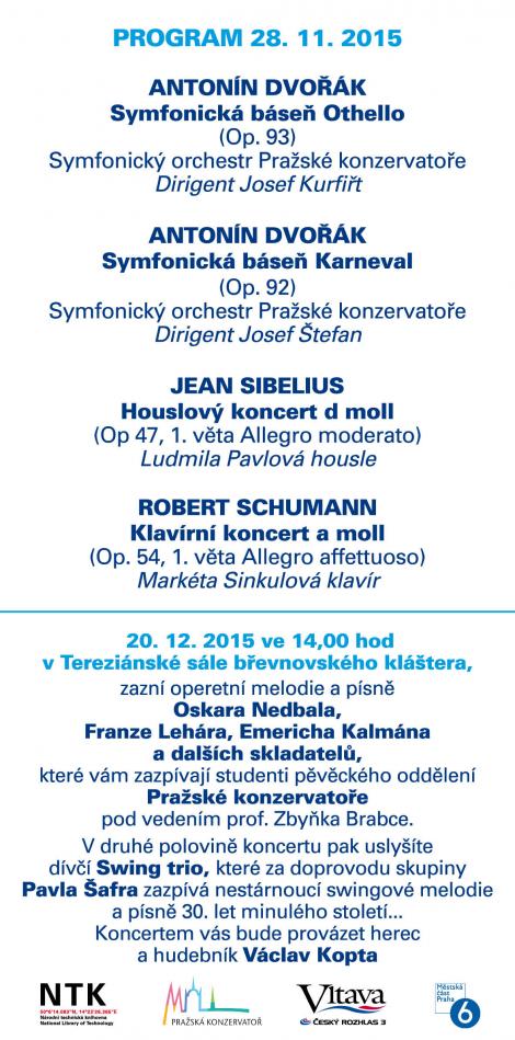 Zveme Vás na koncert symfonického orchestru Pražské konzervatoře, který se koná pod záštitou zástupce starosty MČ Praha 6 Jana Laciny v rámci cyklu Z hvězdiček rostou hvězdy v prostorách Národní technické knihovny, Technická 6, Praha 6.