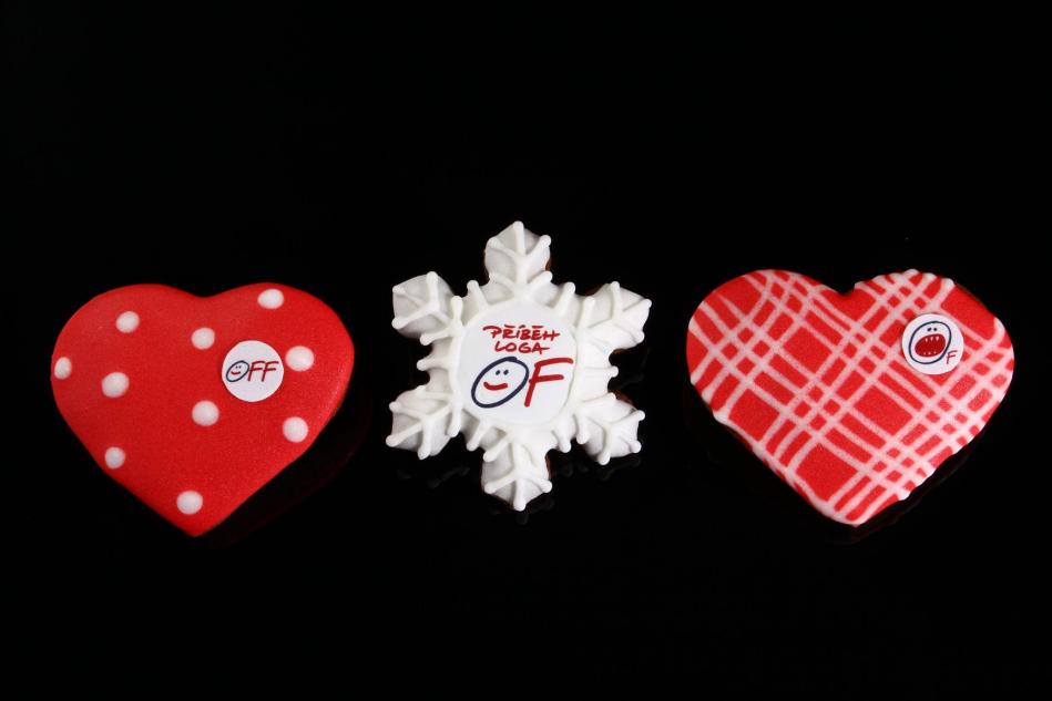 V rámci vernisáže se můžete těšit na cukroví s logem OF od Piece of cake, na originální balící papíry nebo si budete moci vyválet cukroví se znakem loga OF.