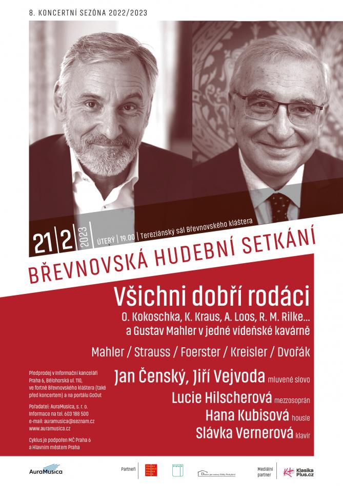 Pořad s názvem Všichni dobří rodáci aneb O. Kokoschka, K. Kraus, A. Loos, R. M. Rilke … a Gustav Mahler v jedné kavárně je vyprávěním o fiktivním setkání čtyř osobností vídeňského života, které uvádí Jan Česnký a Jiří Vejvoda. Hudbu G. Mahlera, R. Strausse, A. Dvořáka, J. B. Foerstera a F. Kreislera zahrají a zazpívají Lucie Hilscherová – mezzosoprán, Hana Kubisová – housle, Slávka Vernerová – klavír. Pořad je součástí 8. sezóny Břevnovská hudební setkání a uskuteční se 21. 2. v 19.00 v Tereziánském sále Břevnovského kláštera.
