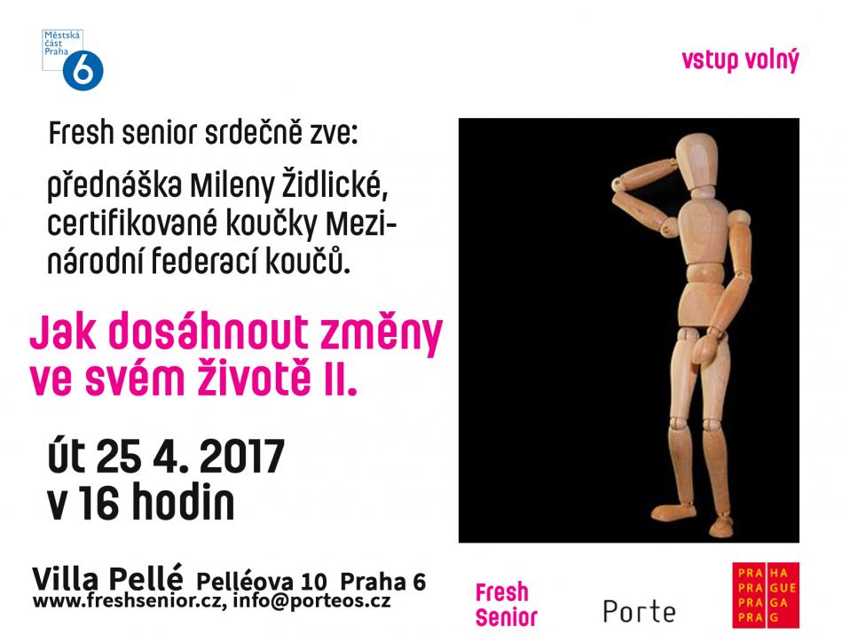 Fresh senior srdečně zve na již 2. přednášku Mileny Židlické, certifikované koučky Mezinárodní federací koučů o motivaci a odhodlání změnit třeba stereotypy, nebo najít motivaci pustit se do něčeho nového.