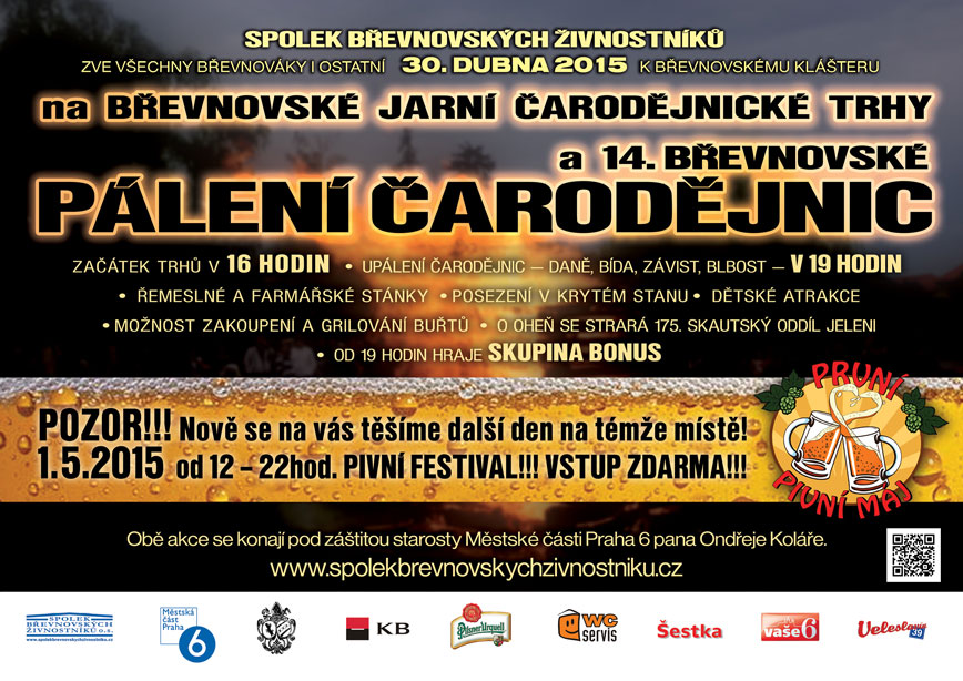 ve čtvrtek 30.4.2015 od 16:00 - 01:00 u Břevnovského kláštera