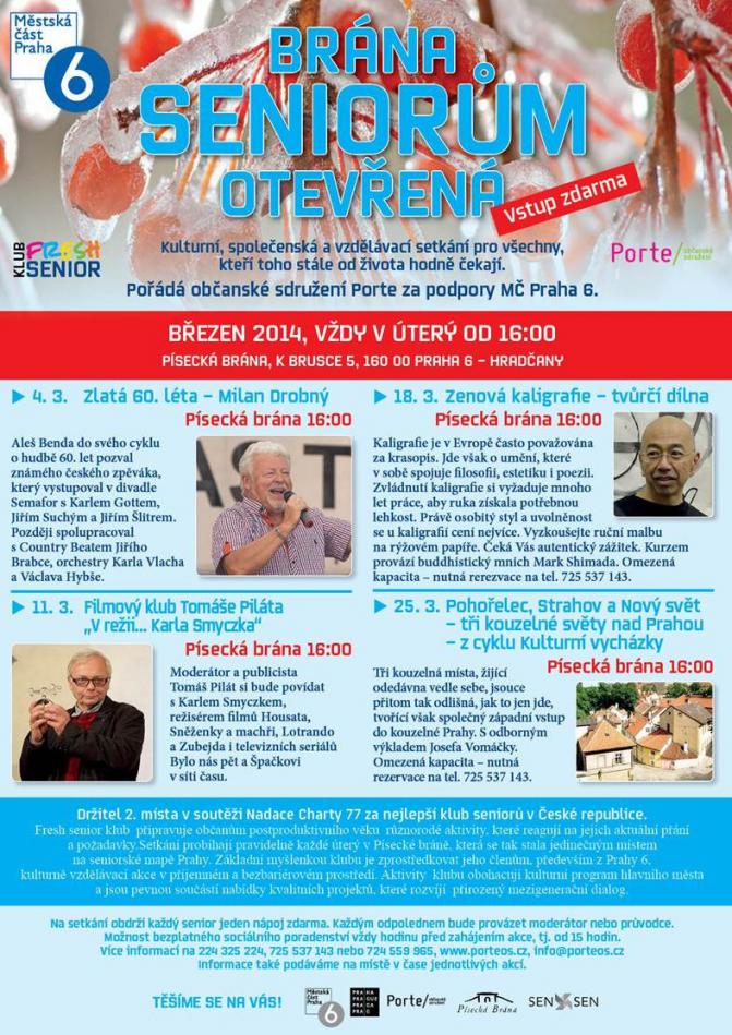 Brána seniorům otevřená - pravidelná kulturní a společenská setkání. Filmový klub Tomáše Piláta „V režii… Karla Smyczka“.