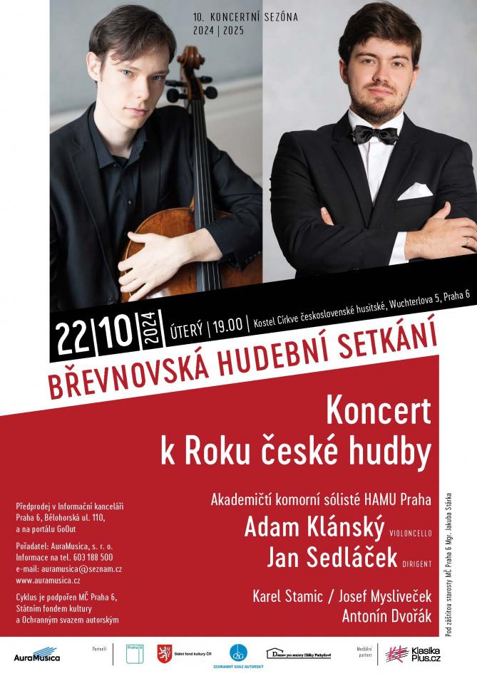 2. koncert jubilejní 10. sezóny Břevnovských hudebních setkání je věnován Roku české hudby a uskuteční se v úterý 22. 10. 2024 v 19.00 hodin v kostele Církve československé husitské ve Wuchterlově ulici 5 v Praze 6 – Dejvicích. Vystoupí Akademičtí komorní sólisté HAMU Praha, jako sólista se představí violoncellista Adam Klánský, koncert řídí Jan Sedláček. Na programu jsou díla Karla Stamice, Josefa Myslivečka a Antonína Dvořáka.