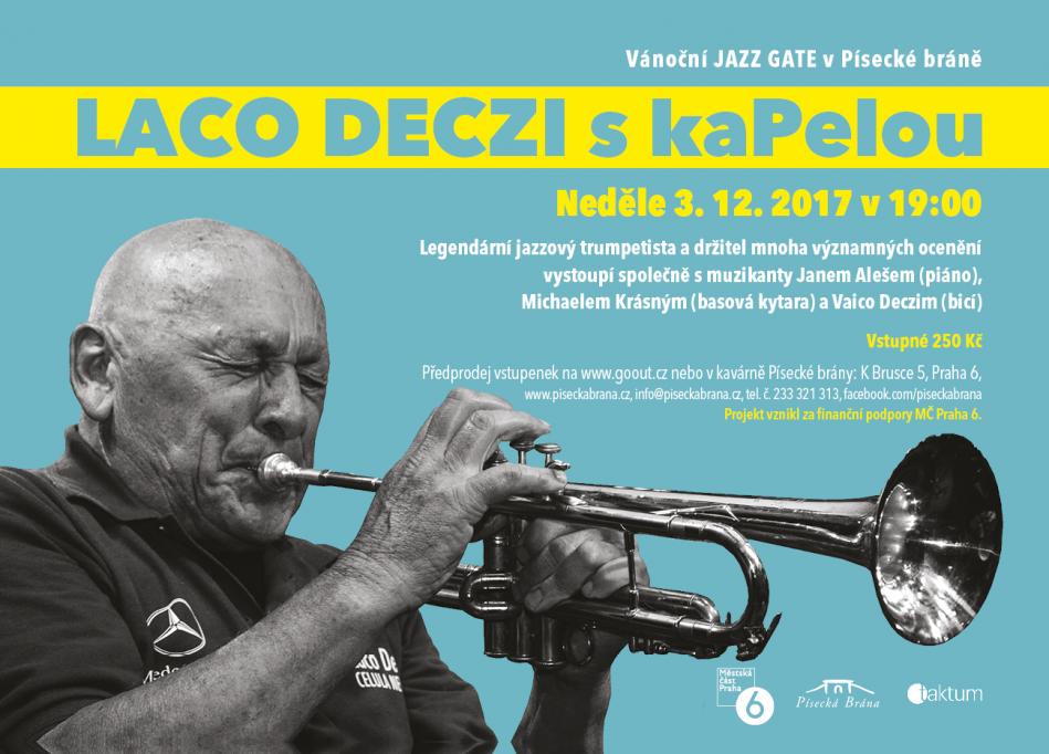 Srdečně zveme na poslední letošní Jazz Gate, který přivítá trumpetovou světovou legendu Laco Deczi a kaPelu.