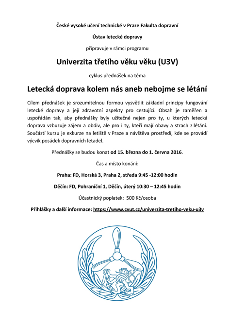 Přihlášky a další informace: https://www.cvut.cz/univerzita-tretiho-veku-u3v