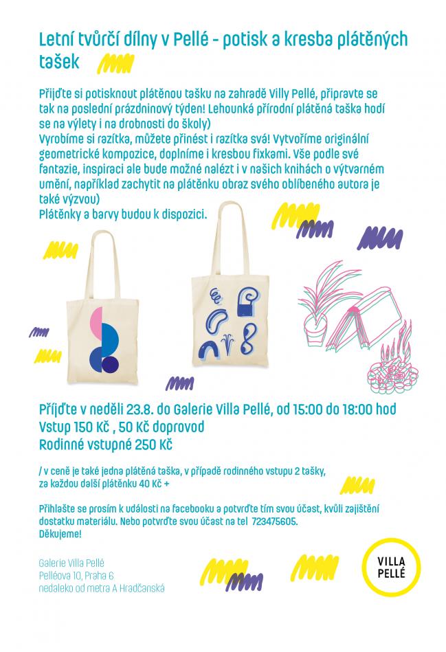 Přijďte v neděli 23.8. v 15 hodin do Galerie Villa Pellé na letní tvůrčí dílny - potisk a kresba plátěných tašek.