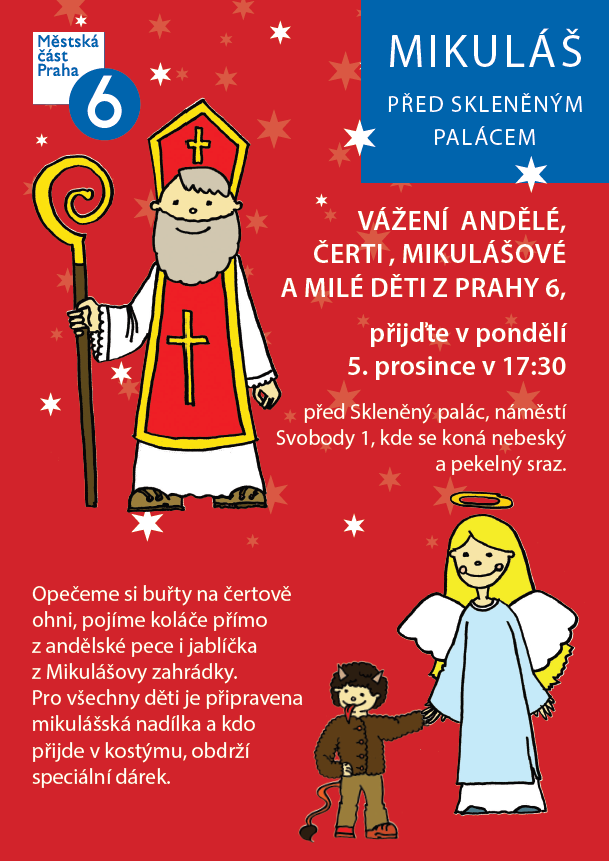 VÁŽENÍ ANDĚLÉ, ČERTI, MIKULÁŠOVÉ A MILÉ DĚTI Z PRAHY 6, přijďte v pondělí 5. prosince v 17:30 před Skleněný palác, náměstí Svobody 1, kde se koná nebeský a pekelný sraz.