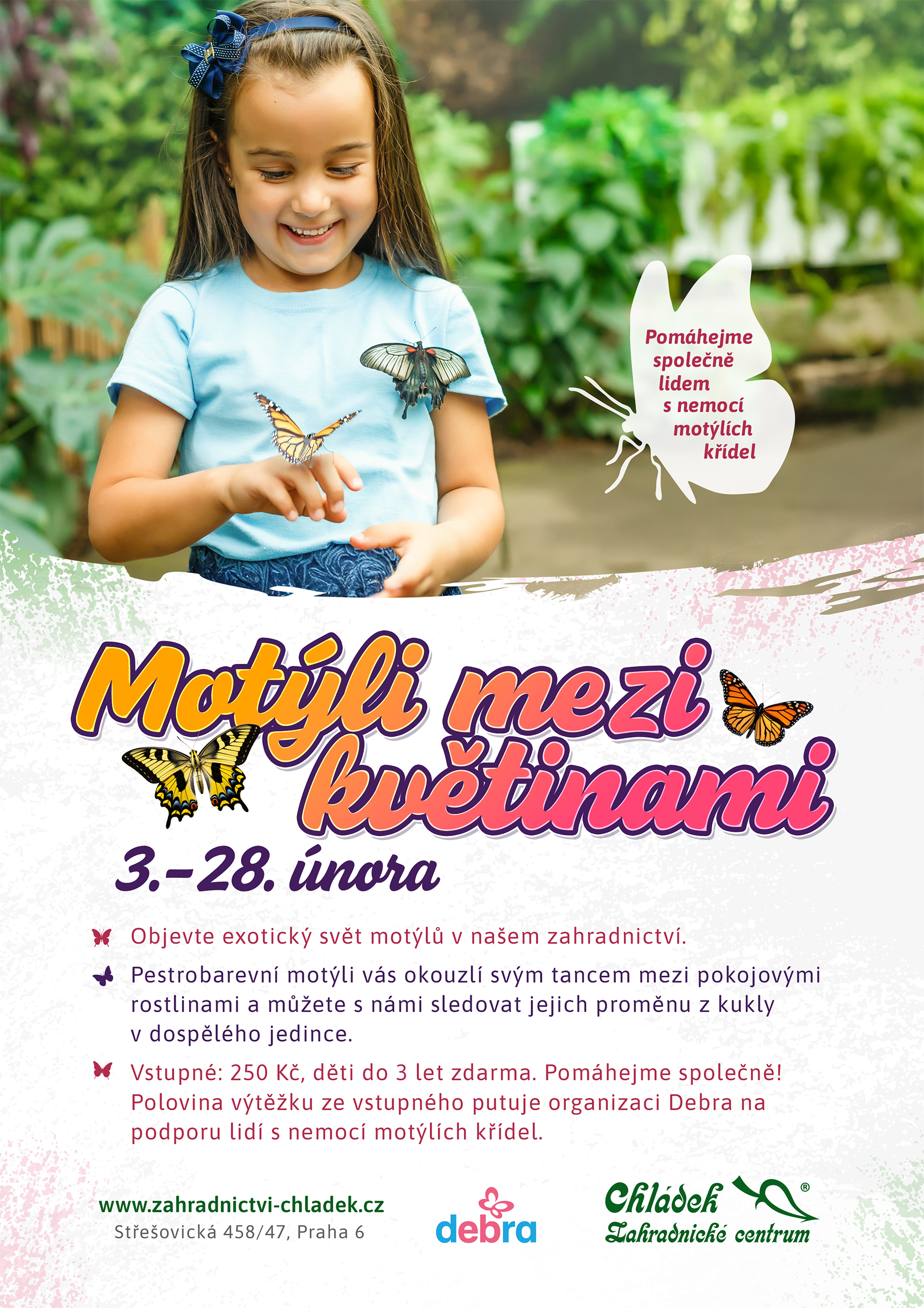 Přijďte obdivovat pestrobarevné motýly z celého světa a užít si tak jedinečný zážitek s celou rodinou. Čekat na vás bude také doplňkový sortiment s motýlí tématikou a rozšířený sortiment pokojových květin. Akce je vhodná pro každého obdivovatele přírody v jakémkoliv věku, pouze pejsci nemají vstup do expozice povolen.