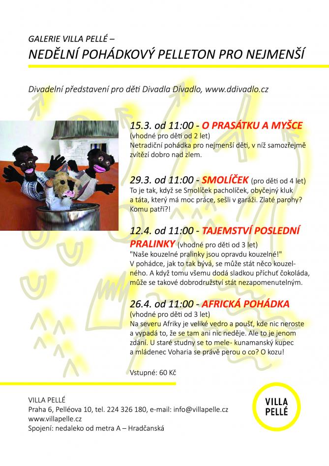 Další pohádkový závod Nedělního pohádkového pelletonu v galerii Villa Pellé s názvem Africká pohádka nás zavede do daleké Afriky. Přijďte v neděli 26.4. v 11 hodin na divadelní představení divadleního spolku Dívadlo.