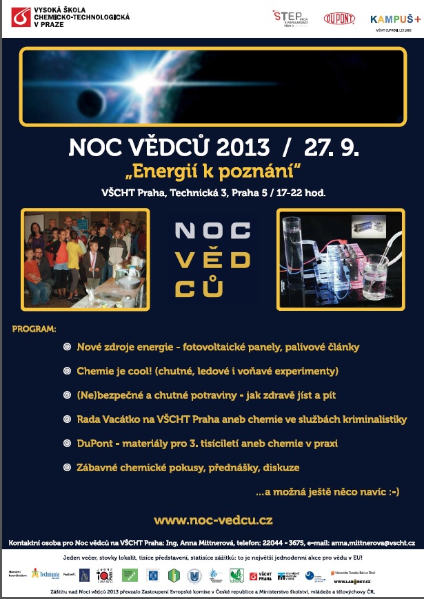 Akce se koná v pátek 27.9.2013 od 17:00 do 22:00 hod. v budově B VŠCHT Praha,