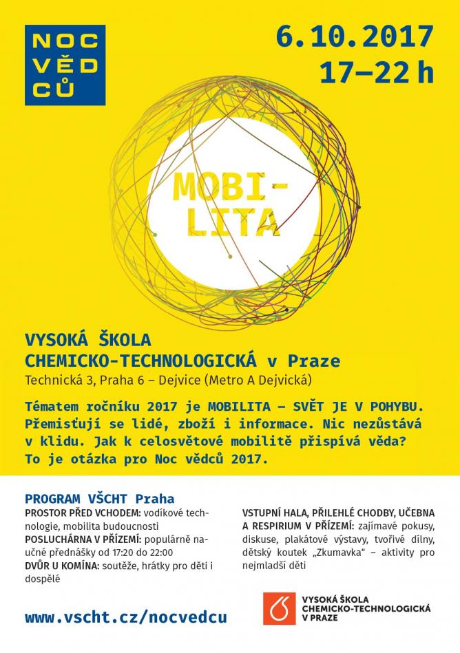 Noc vědců na VŠCHT Praha vás přivítá s otevřenou náručí a přinese vám spoustu zajímavostí zaměřených na spojení mobility, chemie a technologie.