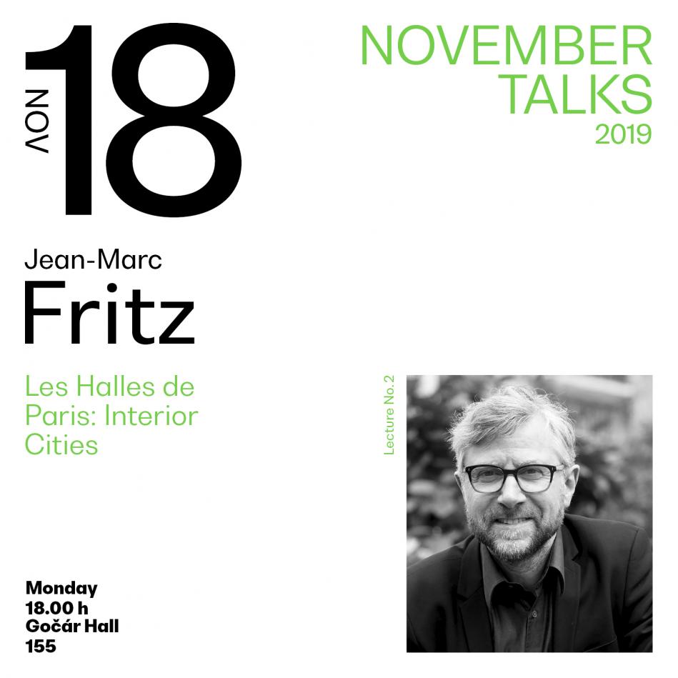 November Talks 2019, "Listopadové promluvy" zahraničních architektů, letos věnované tématu Transformace: zvětšování měřítek a překrývání disciplín. Cyklus je součástí série přednášek, které od roku 2009 financuje nadace Sto-Stiftung na školách architektury v Londýně, Paříži, Milánu, Stuttgartu a Štýrském Hradci. Na FA ČVUT se koná pátým rokem.