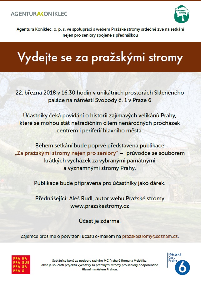 Zveme vás na přednášku „Vydejte se za pražskými stromy“, která se uskuteční ve čtvrtek 22. března od 16.30 hodin ve Skleněném paláci (nám. Svobody 728/1, Praha 6).
