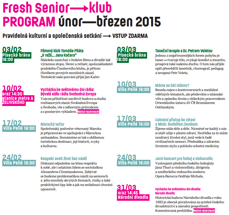 Program Fresh senior klub únor - březen
