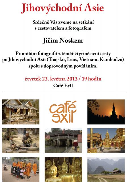 Café Exil zve milovníky cestování na projekci fotografií a povídání s fotografem a spisovatelem Jiřím Noskem, který tentokráte představí život v Laosu, Vietnamu, Thajsku a Kambodži.