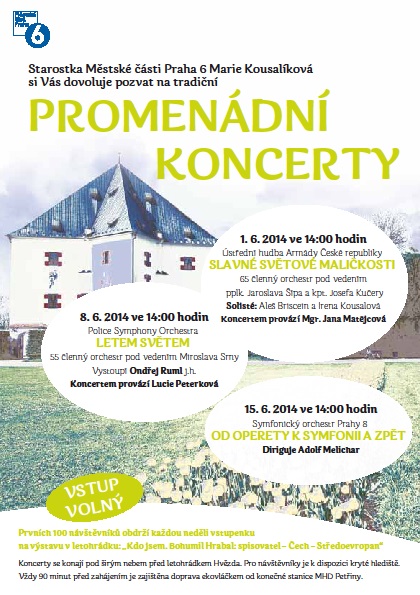 Starostka městské části Praha 6 Marie Kousalíková si Vás dovoluje pozvat na tradiční koncerty.