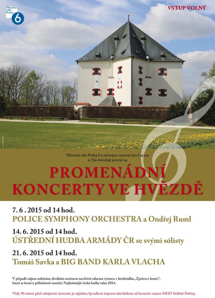 Městská část Praha 6 a zástupce starosty Jan Lacina si Vás dovolují pozvat na tradiční Promenádní koncerty ve Hvězdě.