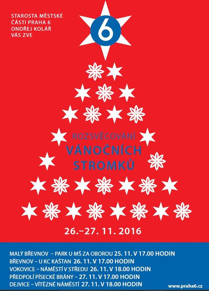rádi bychom Vás pozvali na již tradiční sedmé slavnostní rozsvícení našeho vokovického vánočního stromku na náměstí V středu (před restaurací U kaštanu) v předadventní sobotu 26. listopadu 2016 od 18 hodin. Stromek budeme zdobit již po 17 hodině, můžete přinést i své ozdoby.