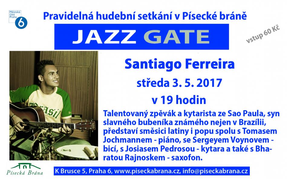 Srdečně zveme na další koncert Jazz Gate. Tentokrát vystoupí mladý talentovaný zpěvák Santiago Ferreira.