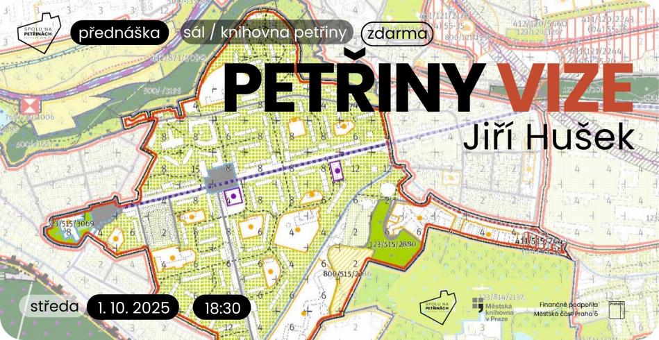Zajímá vás, co se plánuje na Petřinách – v místě, kde žijete – a to jak v blízké, tak i vzdálenější budoucnosti? Přemýšlíte, jak můžete tyto změny ovlivnit? To i mnoho dalšího vám prozradíme a poradíme na přednášce, která volně navazuje na předchozí cyklus „Petřiny neznámé plány a vize“ a představí připomínky spolku k nově vznikajícímu Metropolitní plánu Prahy. Přednáší ing. arch. Jiří Hušek, předseda spolku Spolu na Petřinách.
