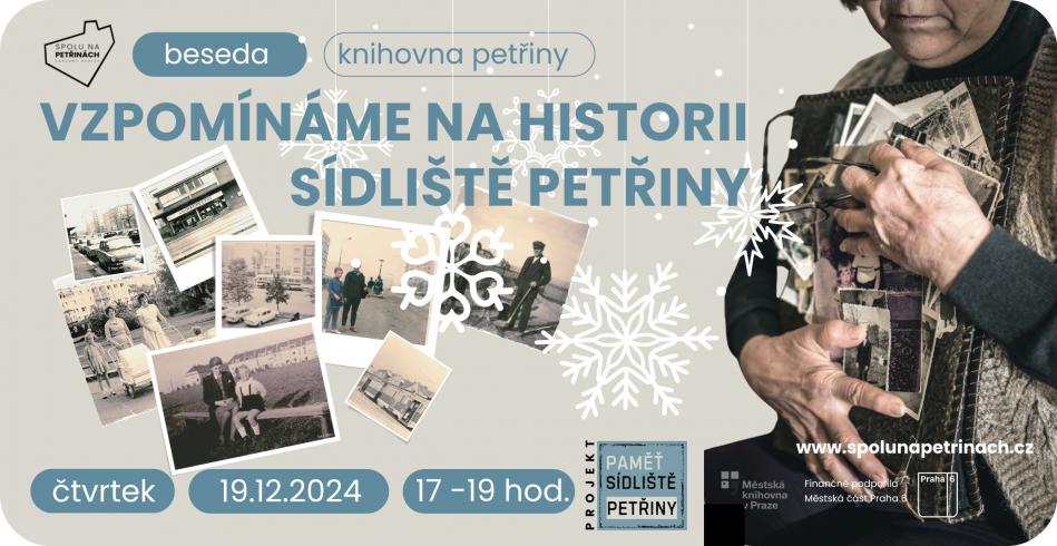 Další pamětnická beseda, tentokrát s cukrovím a vánoční atmosférou, navazuje na cyklus našich přednášek o sídlišti, městě a místě, ve kterém žijeme a je součástí našeho projektu Paměť sídliště Petřiny. Přijďte si zavzpomínat a prohlédnout dobové fotografie.